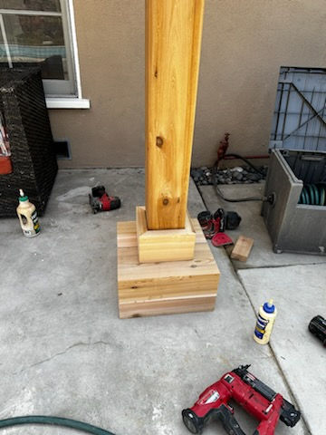 A custom patio cover project featuring poured footings to ensure a sturdy installation, while extending the awning beyond the original design to meet the customer’s needs. To seamlessly blend form with function, we crafted custom matching patio bases that elegantly conceal the supporting footings.